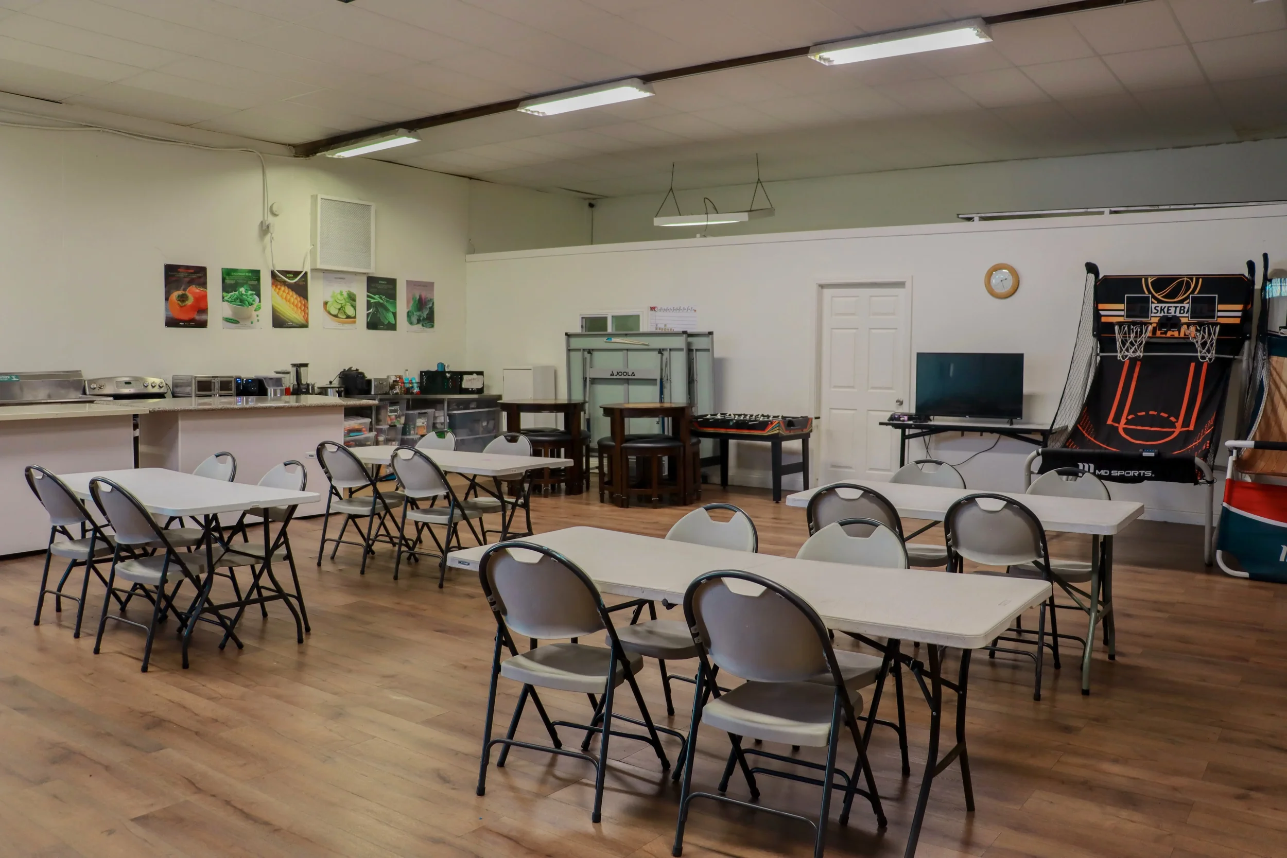 SPACES AT EOBA Our space houses multiple buildings of which serve many purposes, including to hold our community events and offered programs. Here is what we have at EOBA. THE BOXING GYM THE MULTIPURPOSE ROOM THE PORTABLE THE CABANA OUR GARDEN
